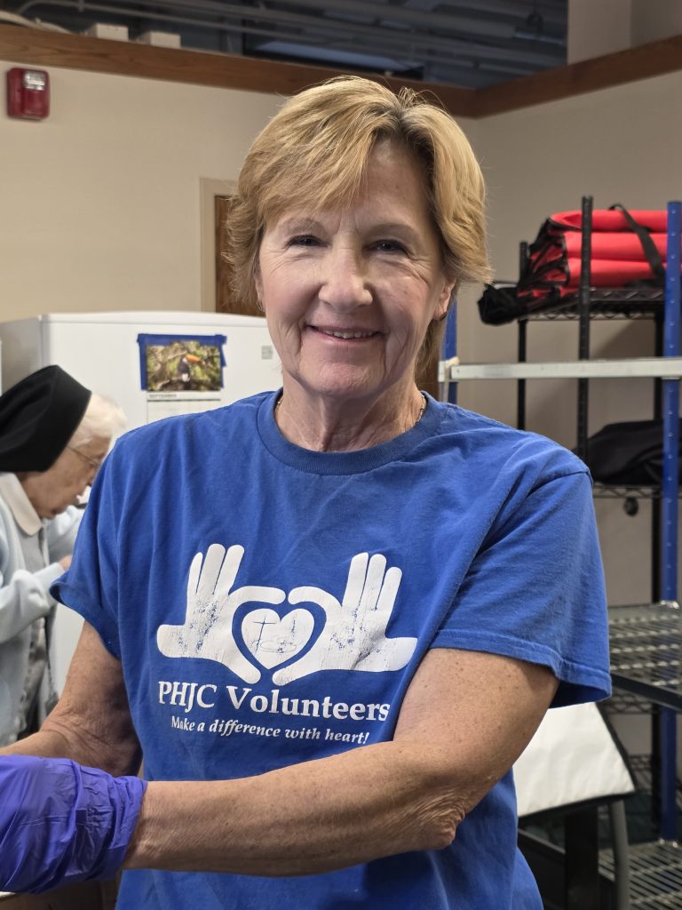 Today, when she is not traveling, Mary shows up each week to help in the PHJC Volunteer Program’s food ministry. From packing boxes to greeting families, she shares her time and presence as a way to live out her faith and stay connected to the community.